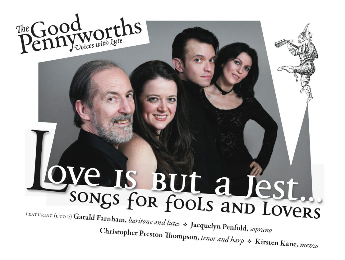 Three pieces from the performance by The Good Pennyworths at the 2012 Lute Society of America Summer Seminar & Lute Festival in Cleveland: “Tell me, O Love,” by Alfonso Ferrabosco (d. 1628); “A Perfect Strain,” a new composition by Jordan Clawson (b. 1983) on a poem by Isabella Valancy Crawford (ca. 1880); and “Bid me but live,” by Henry Lawes (1596-1662). The performers are Jacquelyn Penfold (soprano), Kirsten Kane (mezzo-soprano), Christopher Preston Thompson (tenor & Gothic harp) and Garald Farnham (baritone & lute). “A Perfect Strain” was commissioned by the group for this concert.