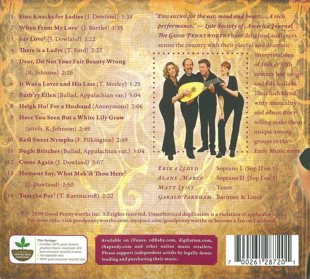 performed by Matt Leisy (Tenor); Verse 2 with Alane Marco (Soprano I), Erika Lloyd (Soprano II), and Garald Farnham (Baritone & Lute)